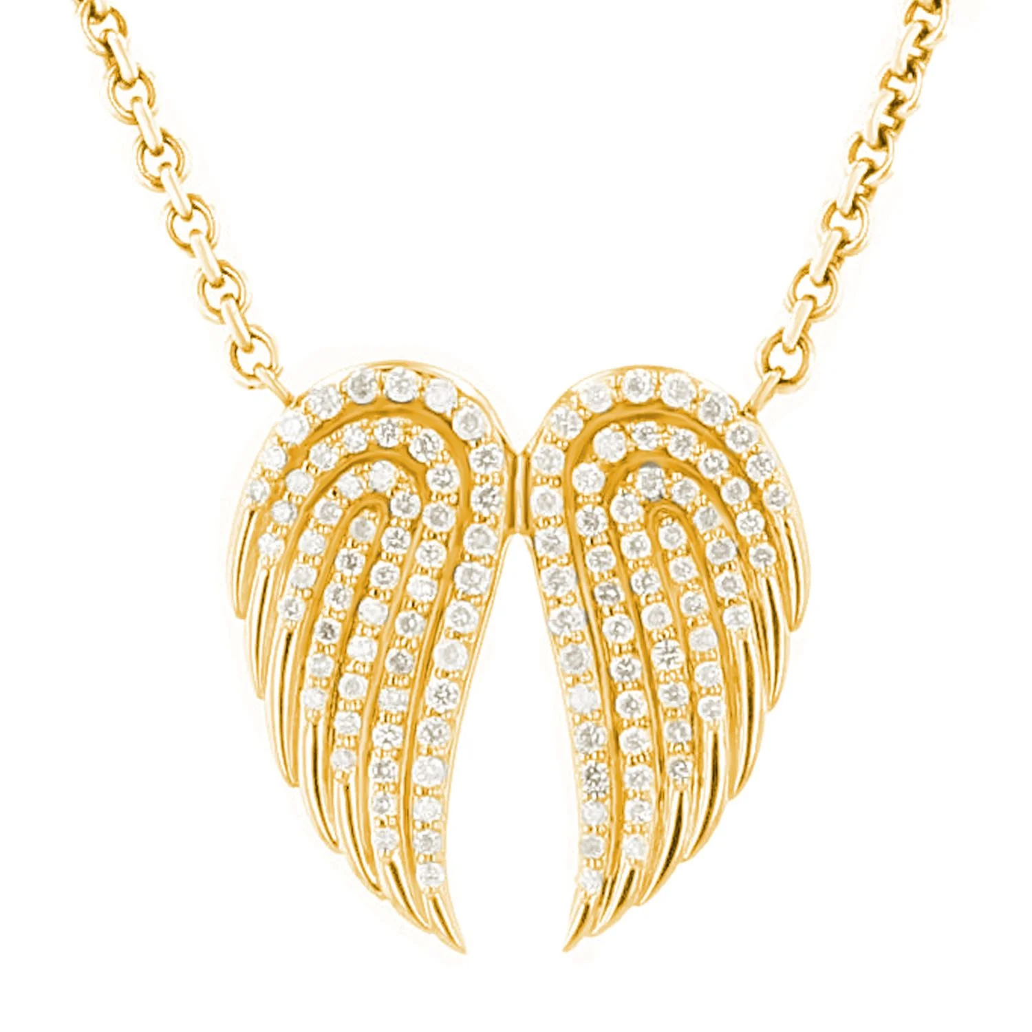 14K Diamond Double Angel Wing Pendant on Cable Chain Necklace - 17-18"