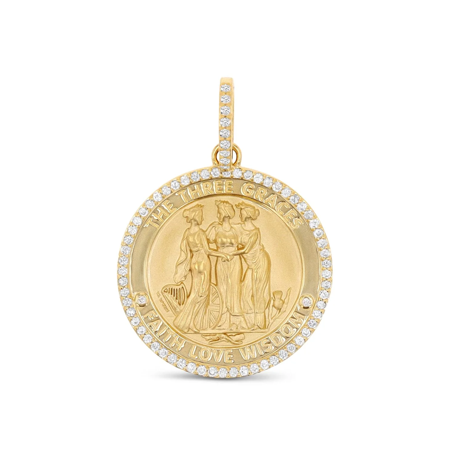 14k Diamond Three Graces Medallion "Faith Love Wisdom" - 30mm