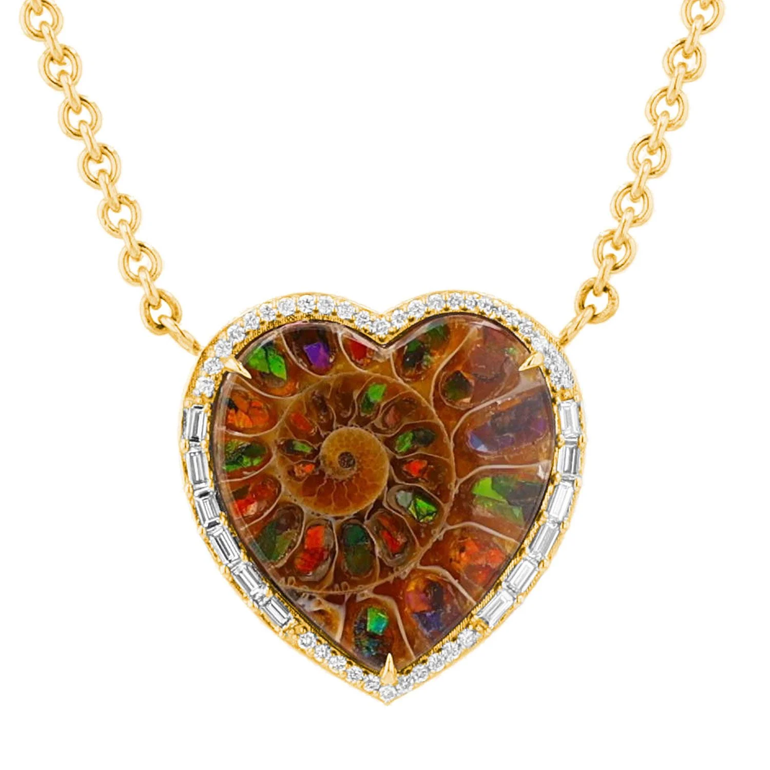 14k Gold Ammonite Heart Pendant on Cable Chain - One of a Kind
