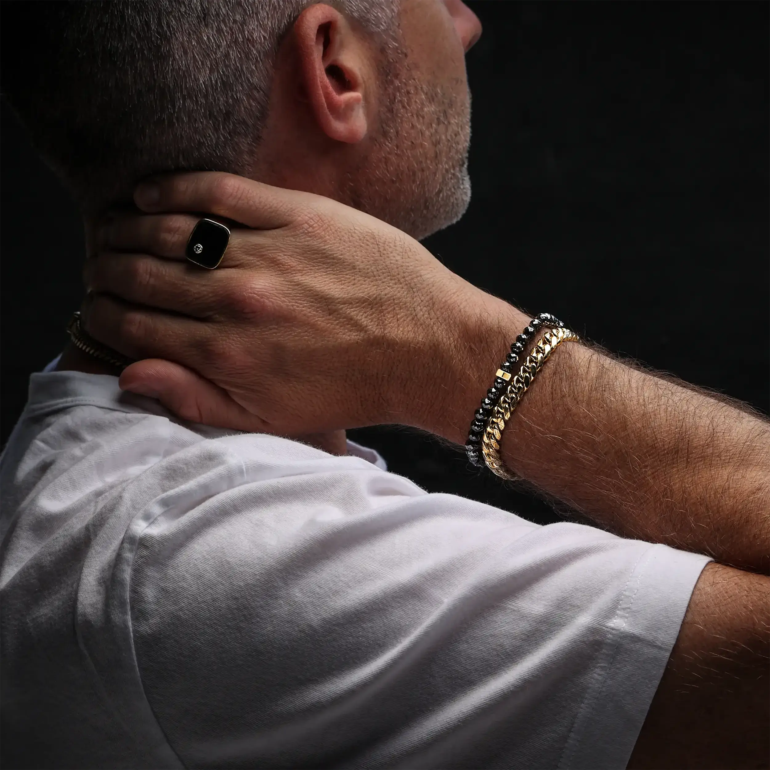 This 14k Mr. LOWE Men's Raw Black Diamond Tennis Bracelet combines rugged charm with refined elegance. Featuring raw hand-cut black diamond beads, each piece is uniquely striking, complemented by 14k gold rondelle accents. Designed in a comfortable slip-on style, it offers effortless wearability while making a bold, sophisticated statement.