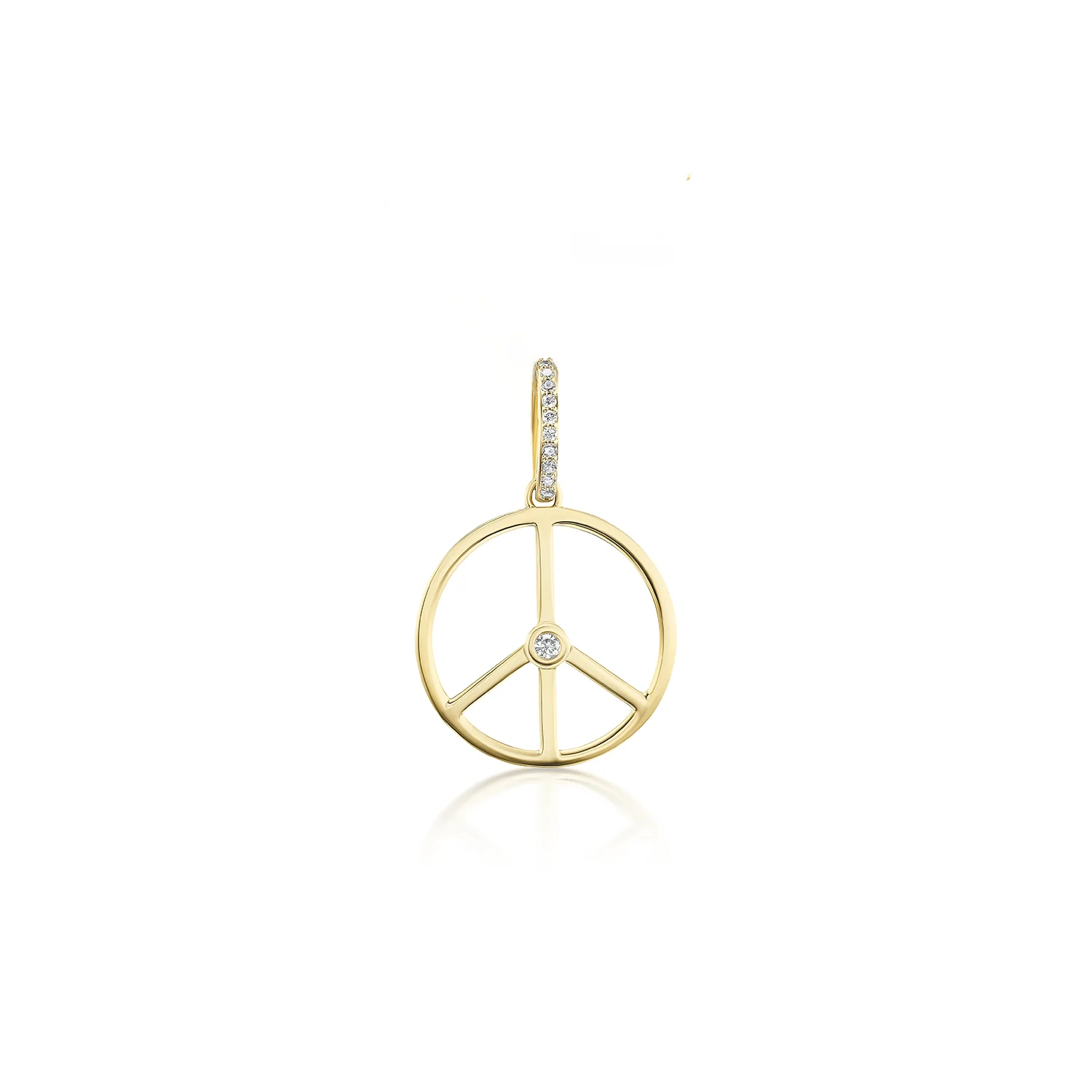 14k Peace Sign with Diamond Bezel Medallion on Cable Chain Necklace - 18"—
