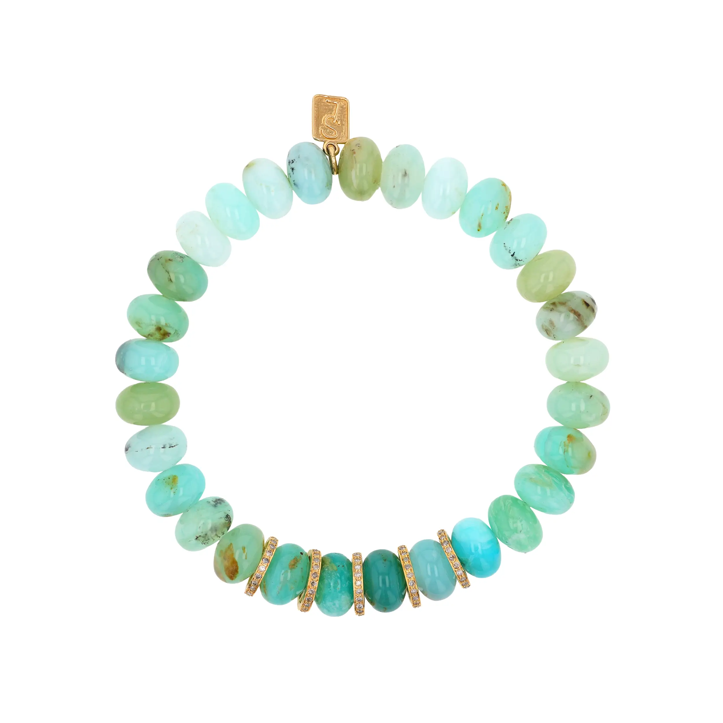 -70%14k Peruvian Opal Beaded Bracelet with 5 Diamond Rondelles - 9mmā