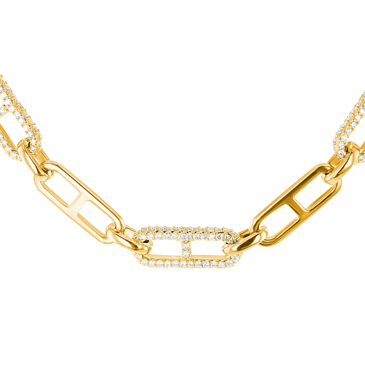 14K Three Paris H Diamond Link Necklace - 16" - 18 ¾"—