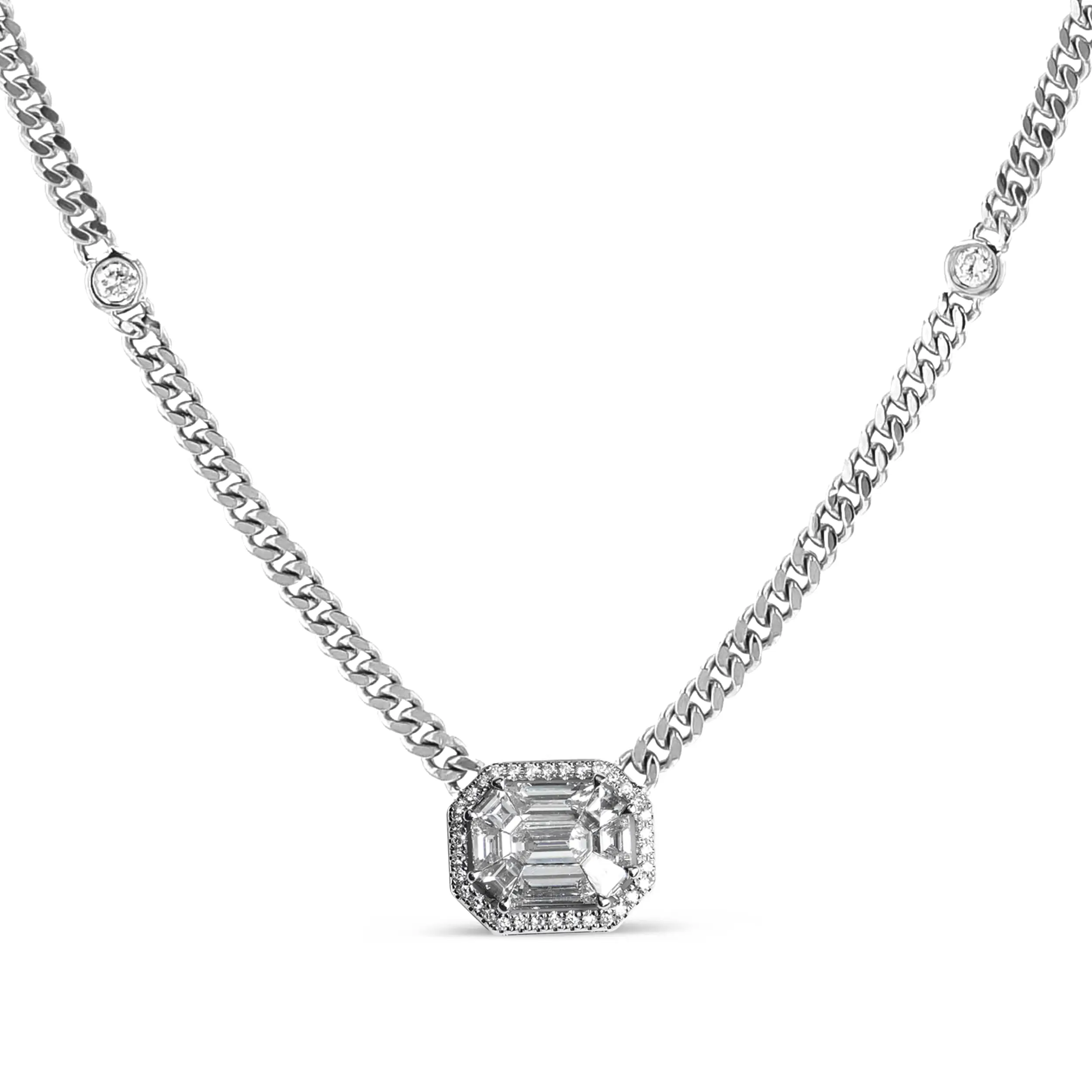 14k White Gold Illusion Emerald Cut Diamond Halo Necklace