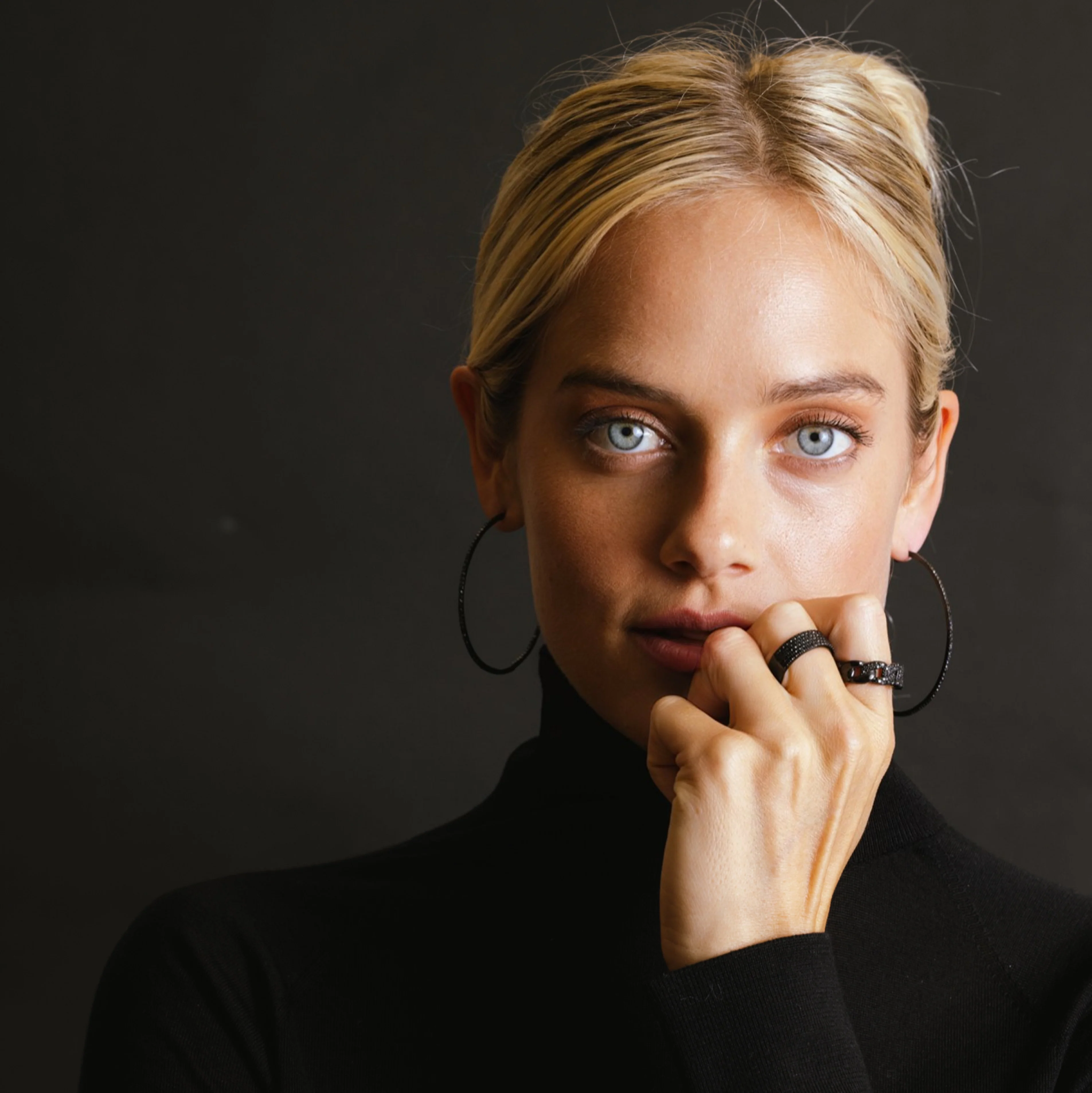 Classic diamond hoops have gone to the dark side--with jet black diamonds and rhodium plating.