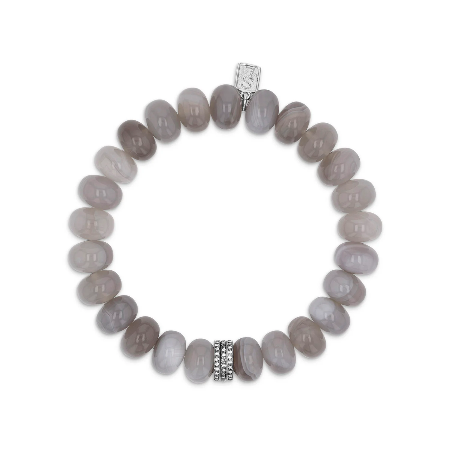 Botswana Agate Bracelet with 3 Diamond Rondelles - 10mm