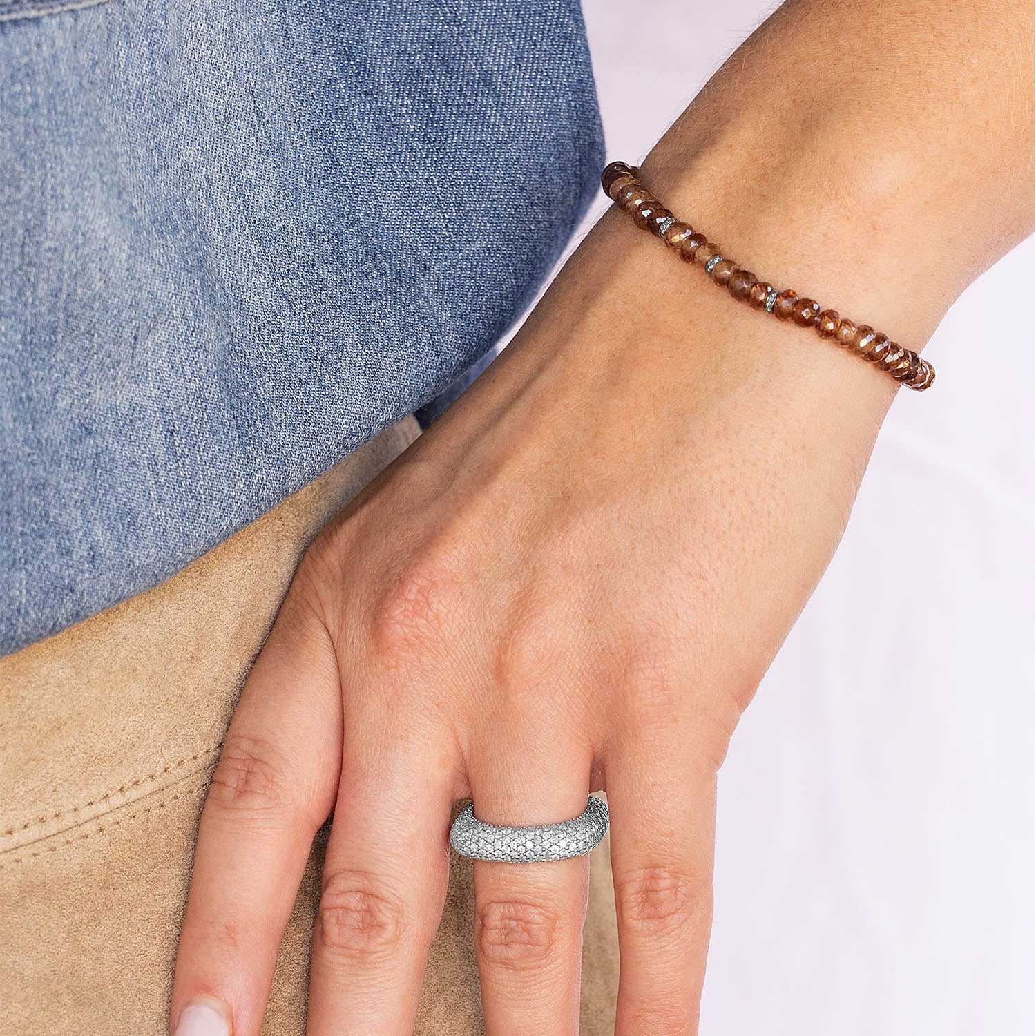 Brown Zircon Mini Bracelet with 3 Diamond Rondelles - 5mm