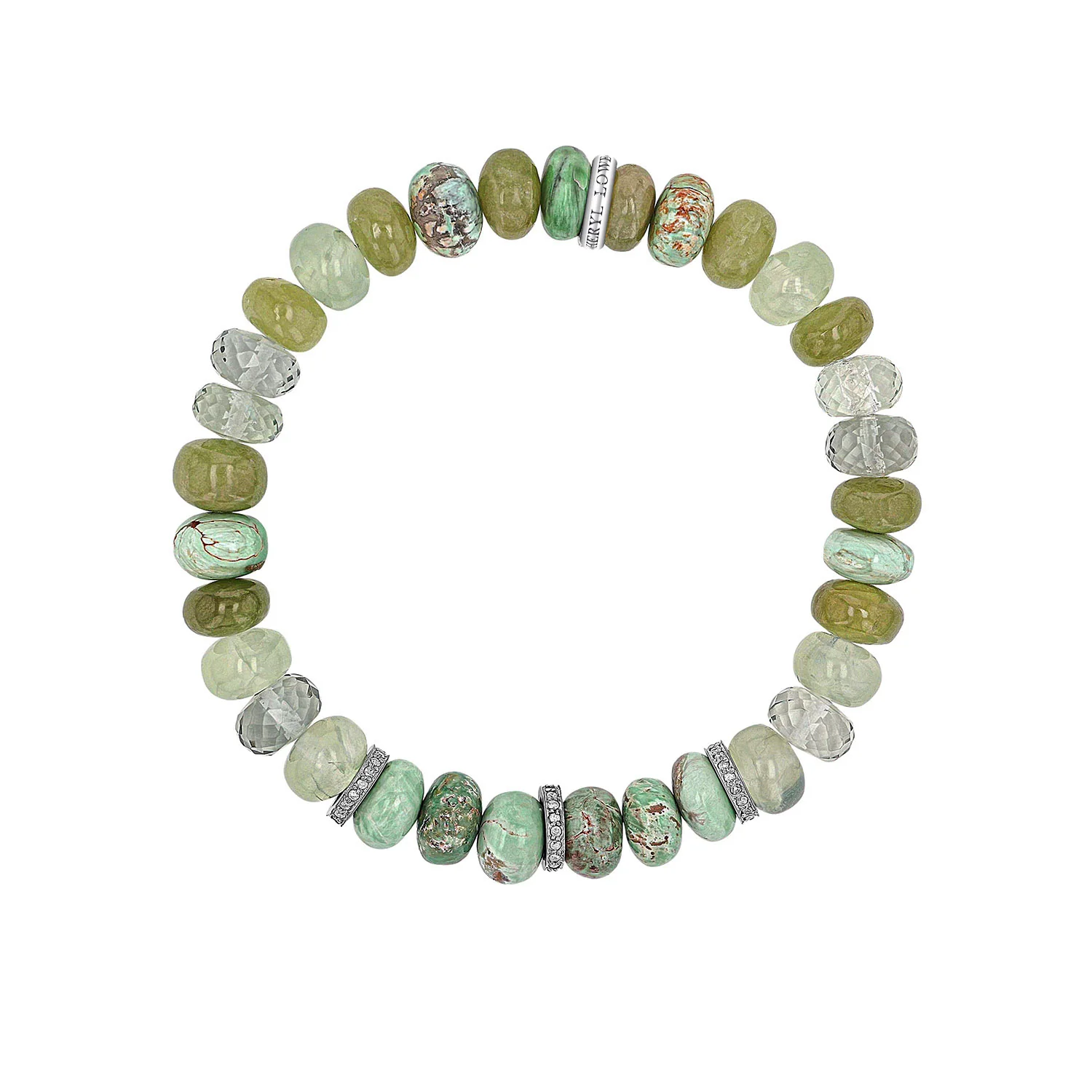 Green Mix Gemstone Beaded Bracelet with 3 Diamond Rondelles - 8mm