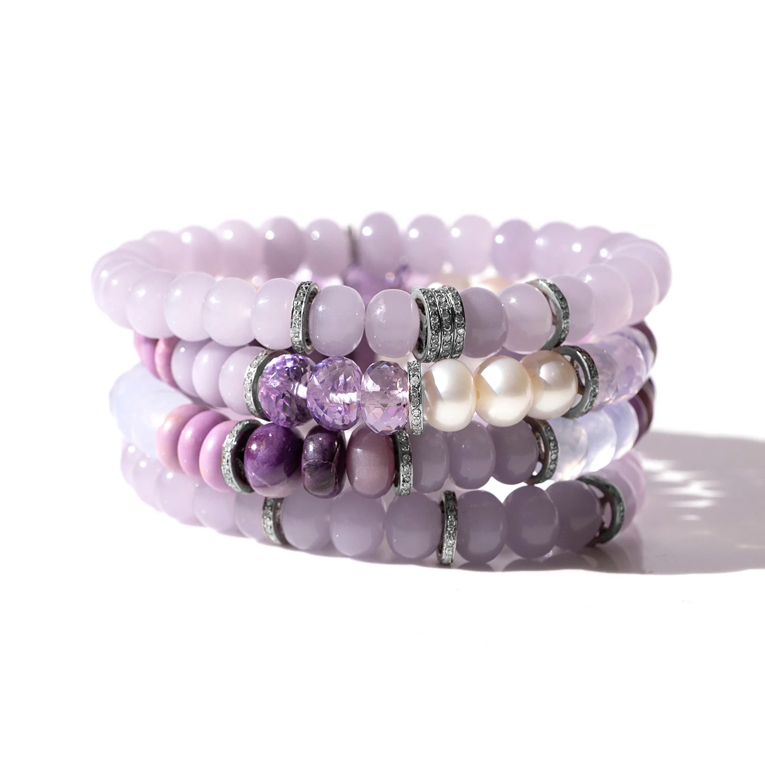 Lavender Haze Mix Gemstone Bracelet with Diamond Rondelles - 8mm—
