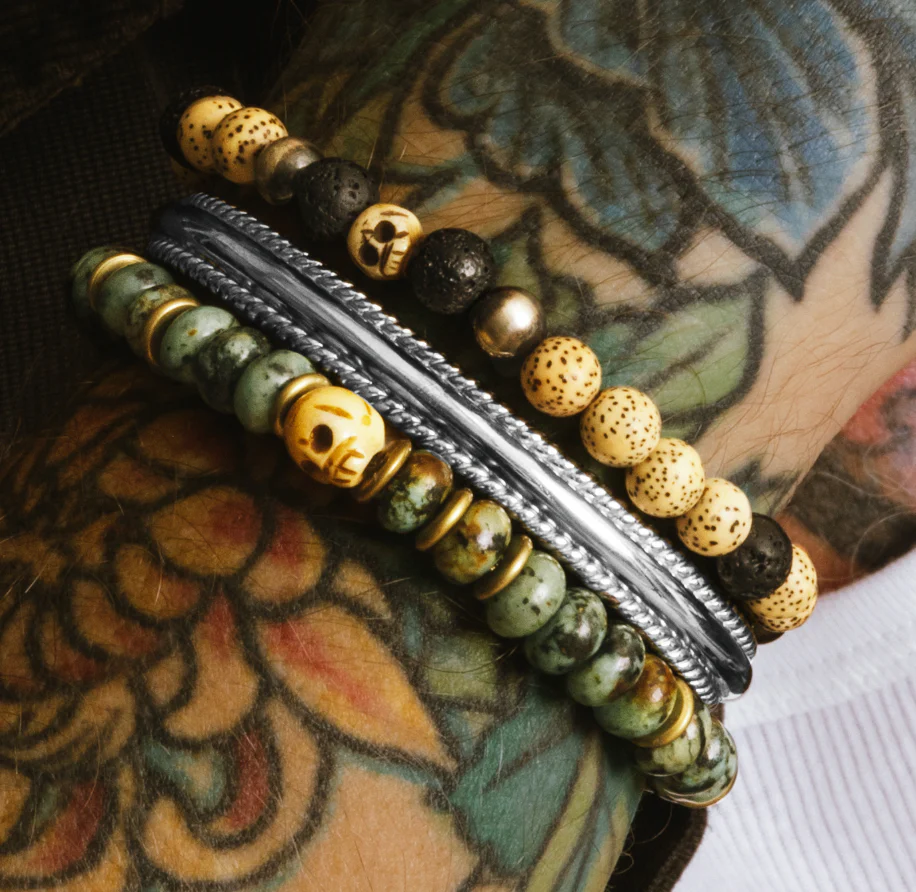 Men's Mr. LOWE African Turquoise Bracelet with Carved Skull Bead - 8mm